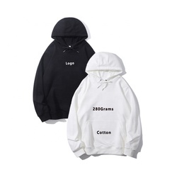 Logo personalizzato da uomo 280 grammi di cotone bianco Unisex larghi oversize Streetwear Pullover felpe con cappuccio con tasca a canguro